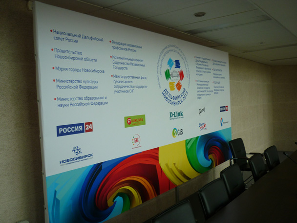 Для пресс-конференции во время церемонии открытия Международных Дельфийских игр, проходивших с 16 по 21 мая в спорткомплексе "Заря",компанией "Экспогрупп" была изготовлена конструкция Press Wall размером 4×2, 5 м.